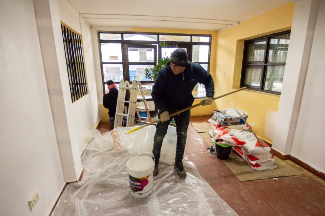El Gobierno de Tierra del Fuego AIAS a través del Ministerio de Educación, Cultura, Ciencia y Tecnología avanza con trabajos de refacción y mantenimiento en edificios educativos de la ciudad de Ushuaia.
