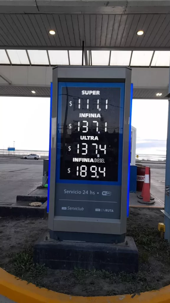 A partir de hoy lunes 16 de Enero 2023, el litro de nafta Super es $127.90, nafta Infinia $163.80, Infinia Super $230.60 y por ultimo Ultra diesel $161.20.