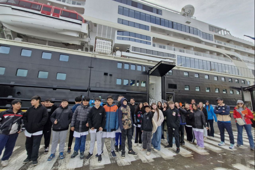 10 de noviembre 2025.- En una acción conjunta entre el Instituto Fueguino de Turismo, la Asociación Internacional de Tour Operadores Antárticos (IAATO), con el acompañamiento de la Dirección Provincial de Puerto y el Ministerio de Educación, inició el ciclo de visitas de escuelas provinciales a cruceros que viajan rumbo a la Antártida desde el Puerto de Ushuaia.
