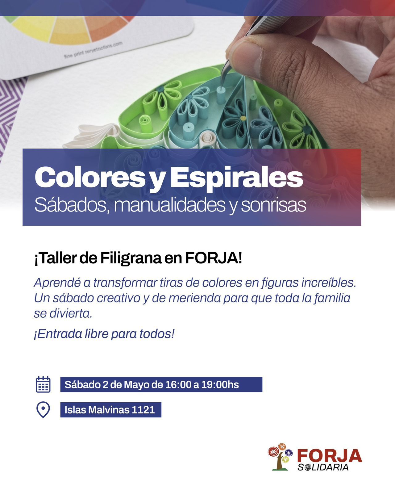 martes 28 de abril 2026.- La propuesta se realizará este sábado 2 de mayo en la sede de FORJA, con una jornada pensada para compartir en familia, aprender la técnica de quilling y disfrutar de una merienda.
