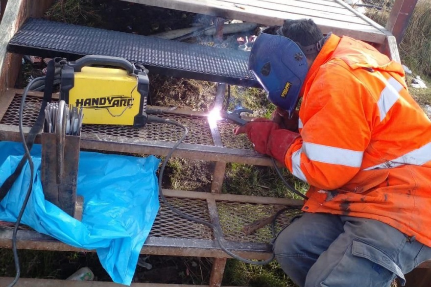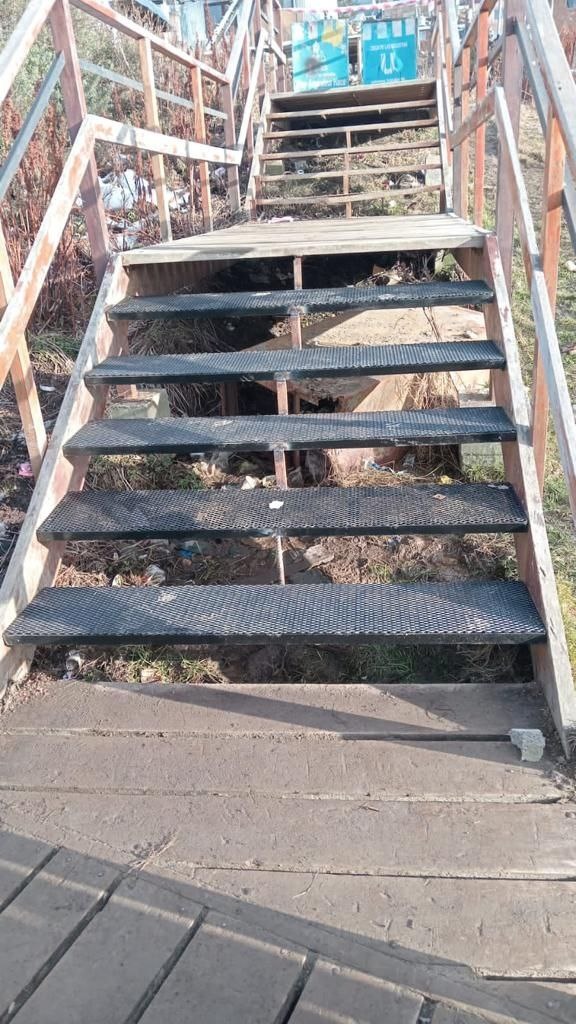 Asimismo, indicó que “la escalera es de metal y tiene escalones de metal desplegado, con lo cual se procedió a cambiar la malla y el refuerzo de la estructura del escalón”, en tanto observó que “ya llevamos un 50 por ciento de la obra, y por lo general estos trabajos demandan entre cinco y siete días”.