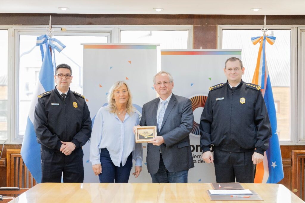 Del encuentro participó la ministra de Gobierno Justicia y Derechos Humanos, Adriana Chapperón; el secretario de Protección Civil, Daniel Facio; representantes de la Policía Provincial; el Director del Instituto de Seguridad Pública de Buenos Aires, Gabriel Unrein y su secretario académico, Alan Nessi.