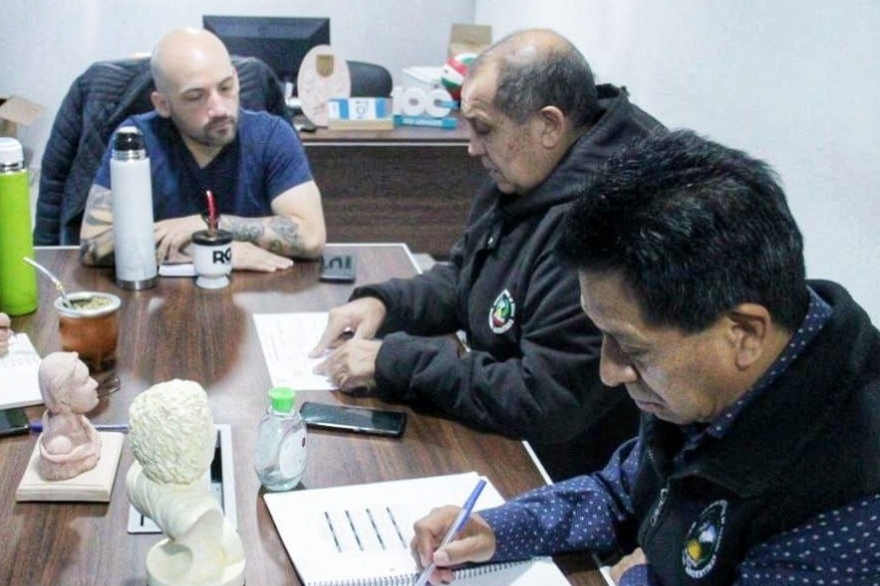 El gerente de la Agencia de Deportes, Cultura y Juventud, Sebastián Bendaña; y el subsecretario de Deportes y Juventudes, Diego Radwanitzer, recibieron al presidente del Centro de Veteranos de Guerra, Raúl Villafañe y al secretario de la institución, Roma Alancay, para trabajar principalmente en la nueva edición de la Prueba Atlética Aniversario Gesta de Malvinas de 7 KM y de la travesía acuática.