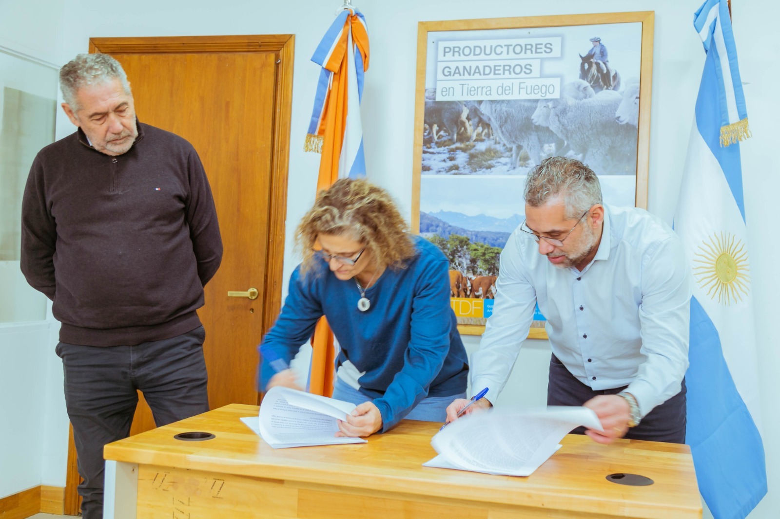 El secretario de Desarrollo Económico y Ambiente del Municipio de Río Grande, Matías Lapadula y la ministra de Producción y Ambiente de la Provincia, Sonia Castiglione, firmaron un importante acuerdo que busca dar un salto cualitativo en el desarrollo productivo local. Participó además el Subsecretario de Ganadería y Producción Animal de la Nación, José María Romero
