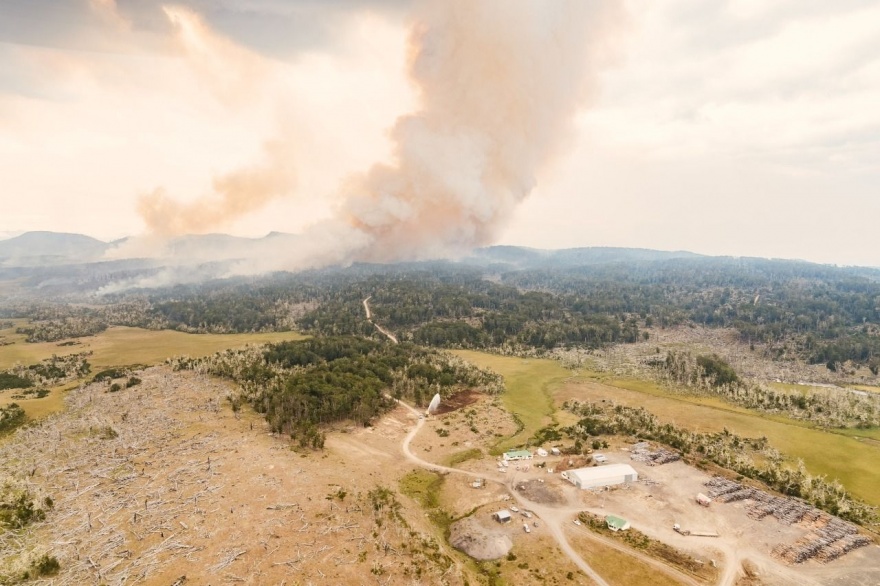 Este domingo se realizó un sobrevuelo en la zona Corazón de la Isla, para evaluar la situación actual del incendio, donde se constató que ninguna vivienda está comprometida en el sector de La Rinconada; zona estancia Los Cerros y estancia La Carmen.