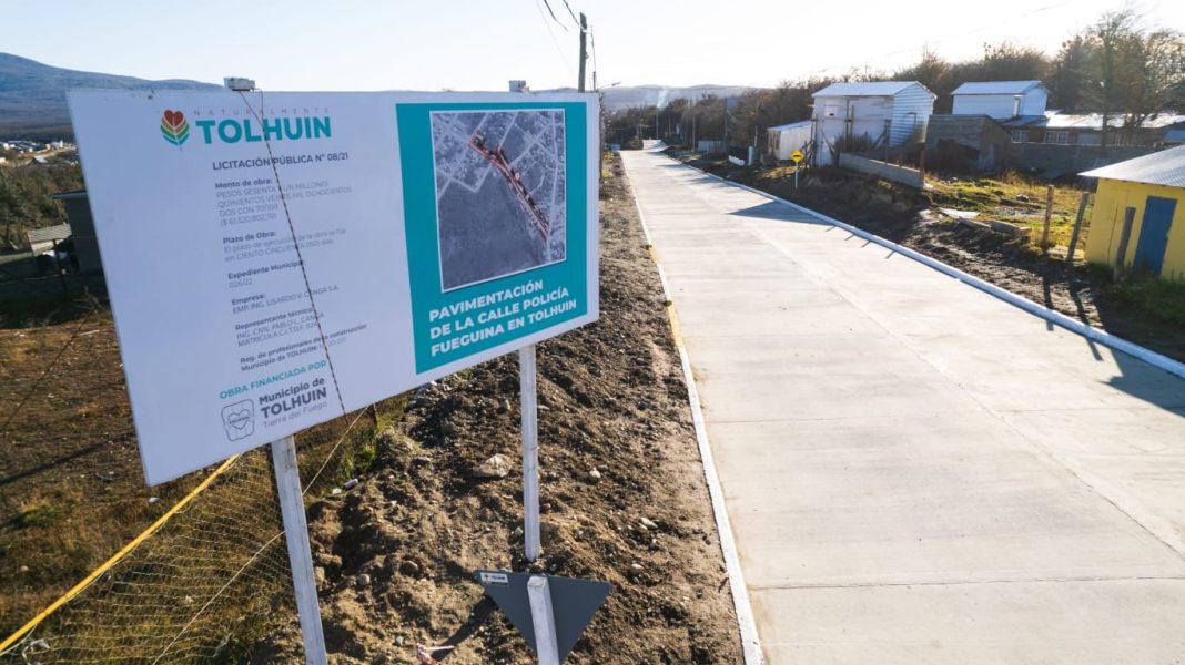 Luego de un trabajo de pavimentación de 800 metros, autoridades del Municipio de Tolhuin junto a concejales, comerciantes, niños y vecinos de la zona participaron de la habilitación al tránsito de la calle Policía Fueguina de la ciudad.